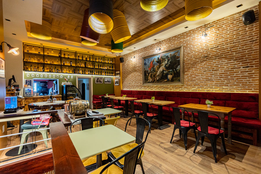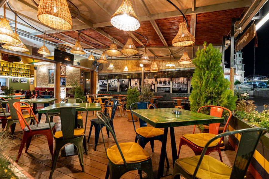 The indoor hall, which we have named "ABC," with a capacity of 25 people, has a combination of traditional and industrial style, which, through photographs and paintings of local artists, best highlights the most important objects and traditions of the city of Korçe.