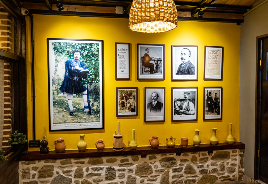 "The Patriots' Room" is a private space with a fireplace, designed for families and groups of up to 20 people. It offers the experience of a "mini museum" where authentic photographs highlight the first Albanian school (1887) and its key contributors, the patriotic figures from Korça who played a significant role in the declaration of independence in 1912. Notable among them is Pandeli Cale, who resided in the building where we are located today. The room also showcases renowned philanthropists and photographers from the early 1900s in Korça.